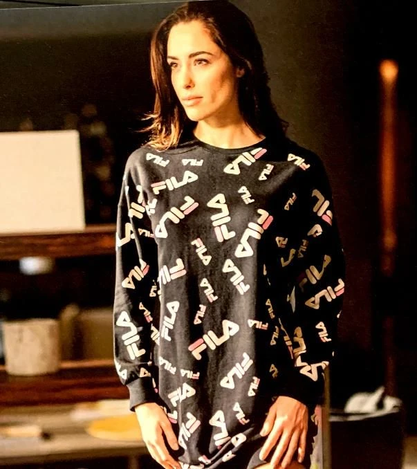 Offerta Outlet campionario Abito Casa Fila 4066 cotone felpato invernale pesante morbido naturale ed anallergico. Maglia felpata maxi lunga girocollo con scritta e logo fila.