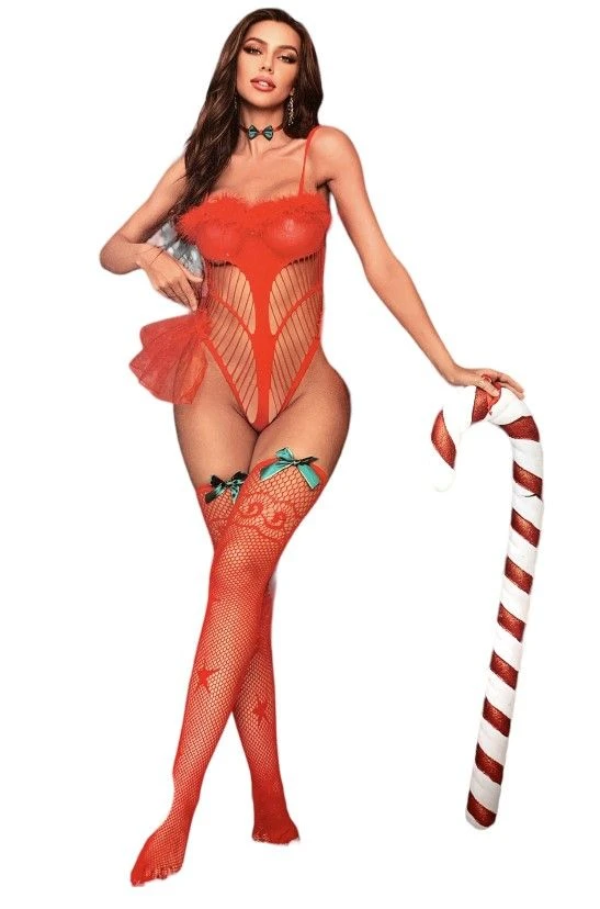 Body Donna Sexy Rosso completo con autoreggenti Taglia unica nel colore Rosso