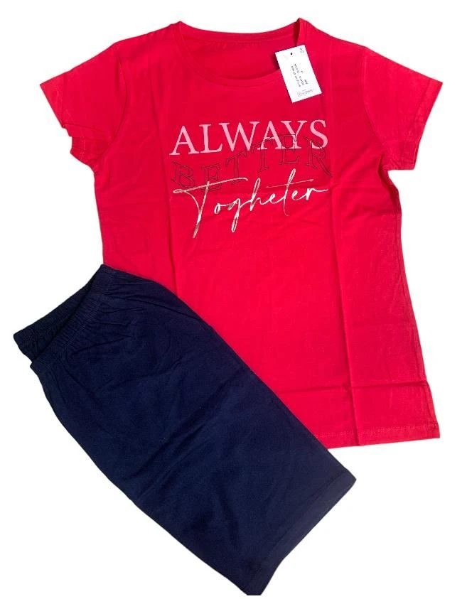 Completo Donna corto 100% cotone IL GRANCHIO lady 5053 Outlet con maglia girocollo mezza manica con stampa e pantalone corto con tasche sul davanti in morbido e fresco 100% cotone jersey