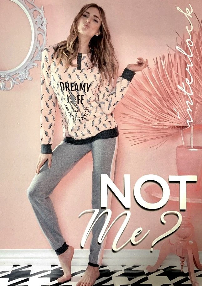 Pigiama Donna caldo cotone Nottingham 34616 offerta speciale in cotone pesante intelock invernale nel colore grigio maglia fantasia e pantalone tinta unita nel nero maglia tinta unita con stampa e pantalone fantasia .