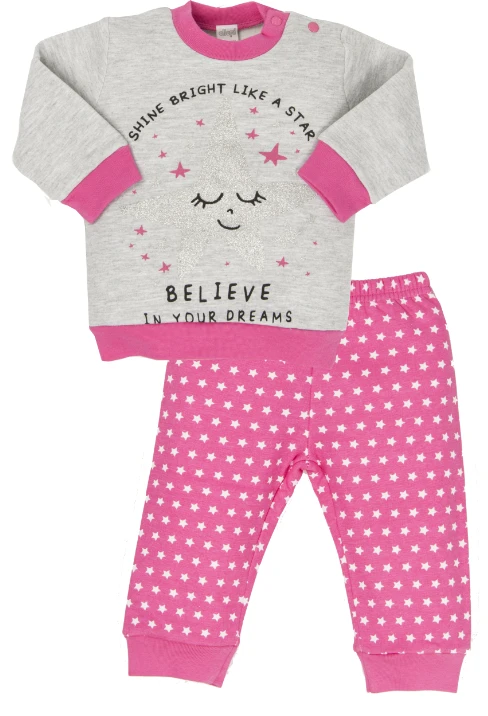 Bellissimo pigiama neonata cotone felpato caldo invernale morbido naturale ed anallergico con maglia girocollo stampata con bottoni laterali a pressione bordato ai polsi ed in vita e pantalone con bordo alle caviglie. Massimo confort